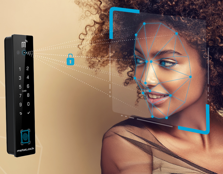 metaLock 3D pametna ključavnica omogoča najhitrejše in najbolj inovativno odklepanje vrat z napredno tehnologijo prepoznave obraza, ki zagotavlja enostavno in brezskrbno odpiranje. Poleg tega vključuje tudi odpiranje na prstni odtis, kodno tipkovnico in NFC čitalnik.